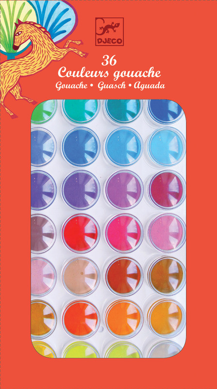 This set features 36 colours of gouache paints which are thick and full of pigment giving them a superior covering ability and are quick drying.