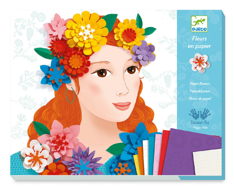 Lots of flowers already cut out in beautiful papers, ready to arrange the young ladies.