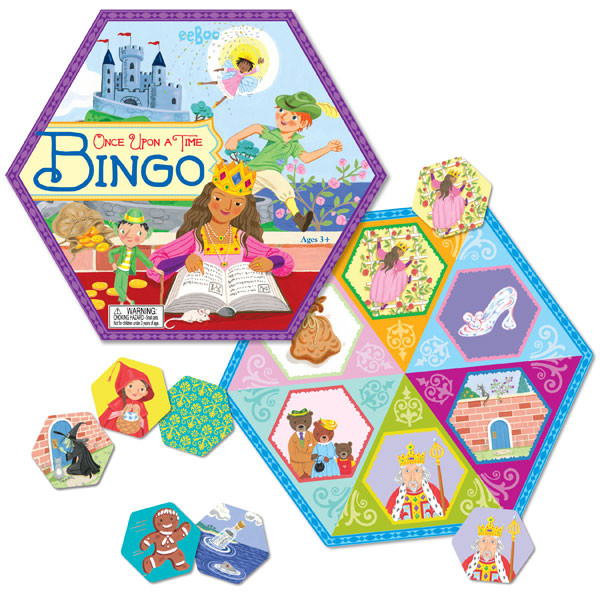 Loading... Please wait...Fairytale characters and magical objects are featured on the pieces in the Once Upon A Time Bingo by eeBoo.