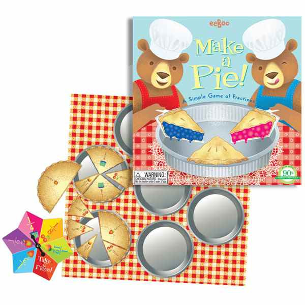 With Make a Pie kids learn math skills and more using a spinner and pie-shaped cardboard pieces.
