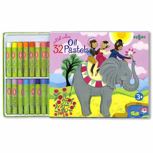 Set of 32 non-toxic oil pastels, beautifully presented in an illustrated box.