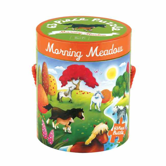 This charming puzzle comes in a handy cylindrical canister with a colorful rope handle.