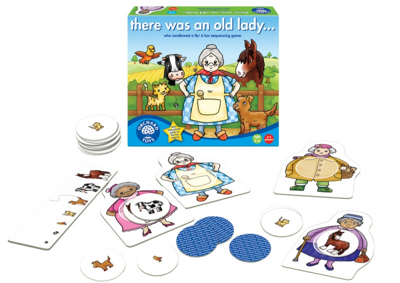 Contents: 4 old lady playing boards, 28 animal picture cards, 1 animal size guide and 1 instruction leaflet.