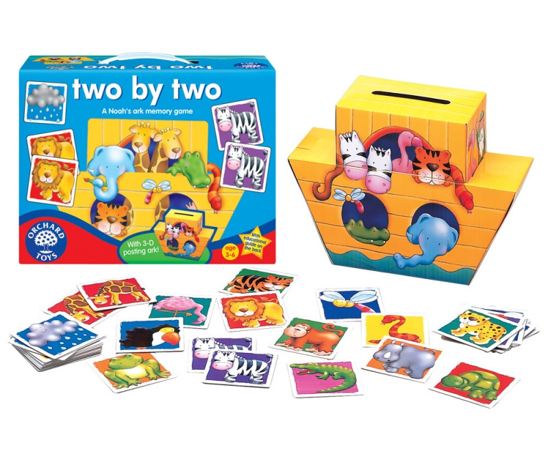 Pair up the animals and post them into the big 3-D Noah’s ark, then find the rain cloud to make the ark sail away.