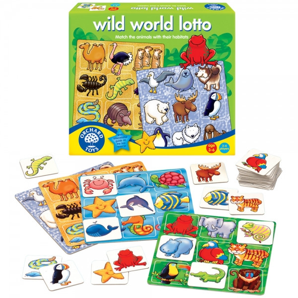 Match animals from jungle, ocean, desert and polar environments with their habitats in this beautifully illustrated award-winning lotto game.